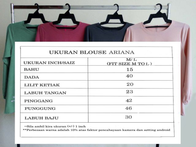Setiap wanita memiliki bentuk dan ukuran tubuh yang berbeda-beda sehingga ukuran yang tersedia juga berbagai macam. Free size fit to xl. Untuk itu kami beri kan sedikit tips kepada anda bagi menentukan secara mudah saiz pakaian atau blouse yang sesuai.